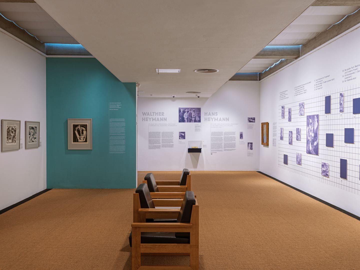 The exhibition design revolves around the biographies of the collectors, presenting seven individual timelines that highlight pivotal moments in their lives. Large-scale images invite visitors to immerse themselves in the era and personal stories of each collector. The vibrant, multi-colored design reflects their unique personalities and visionary perspectives, which have left a lasting imprint on art history. The scenography and design weave together the three narrative levels—the collectors' biographies, the Brücke artists' works from their private collections, and the history of provenance research as illustrated through selected artworks.