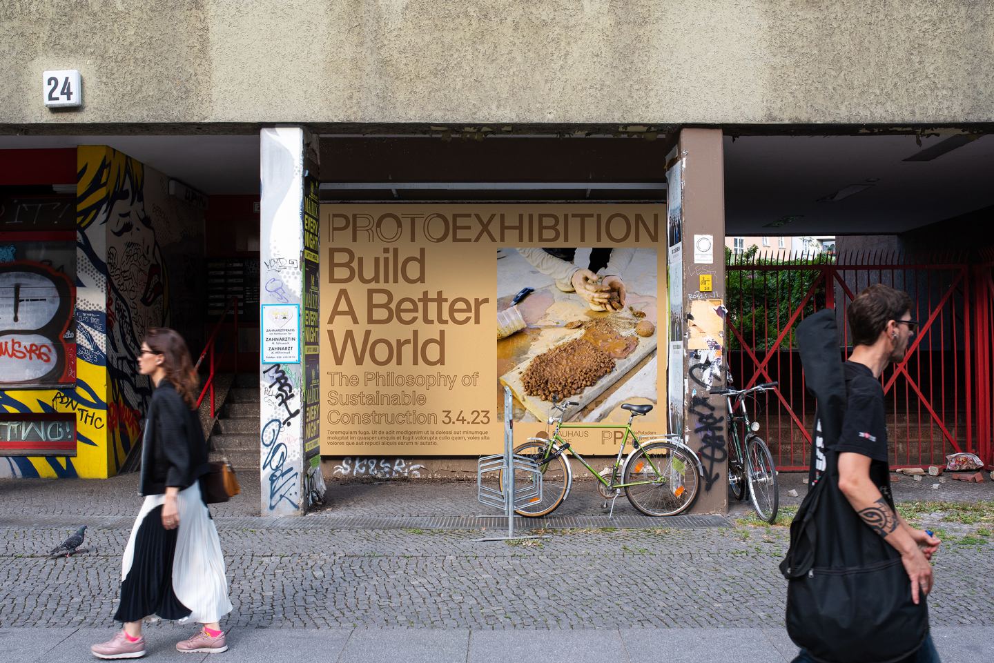 The primary mission of Bauhaus Earth is to delve into the future of sustainable construction. One of its regional satellite projects, ProtoPotsdam, is in the process of building a pavilion in Potsdam, Germany, constructed entirely from circular and bio-based materials. The architectural features of this pavilion, including a modular facade and an open space for lectures, are designed to engage the public in the ongoing research endeavor. As the pavilion itself serves as a structural framework, we have developed a visual identity rooted in the concepts of transition and modularity. With this particular goal in mind, the customized typeface Proto Sans offers a typographical system with wide range of styles.