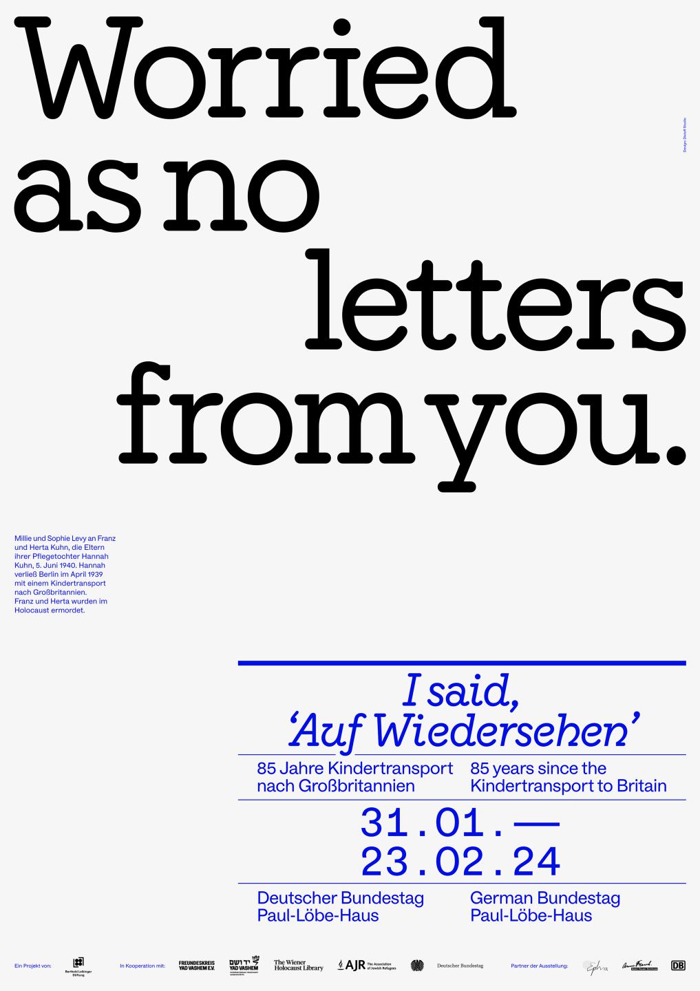 I said ‘Auf Wiedersehen’ — 85 Years of Kindertransport to Britain, exhibition graphics and campaign design for Berthold Leibinger Stiftung, at Paul-Löbe-Haus, German Bundestag, 2024