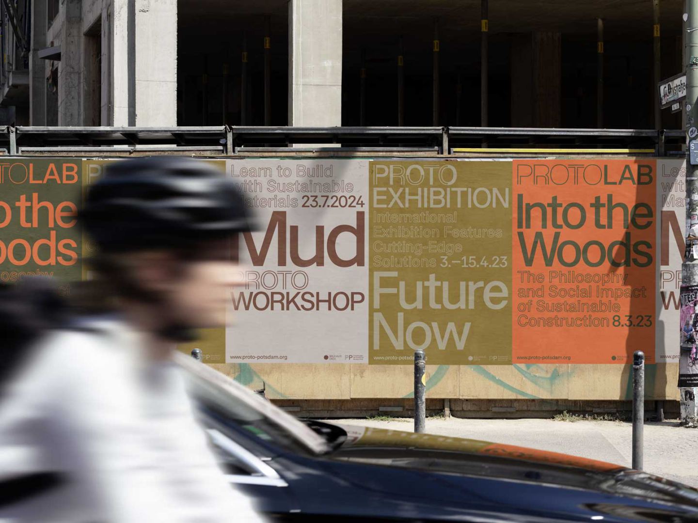 The primary mission of Bauhaus Earth is to delve into the future of sustainable construction. One of its regional satellite projects, ProtoPotsdam, is in the process of building a pavilion in Potsdam, Germany, constructed entirely from circular and bio-based materials. The architectural features of this pavilion, including a modular facade and an open space for lectures, are designed to engage the public in the ongoing research endeavor. As the pavilion itself serves as a structural framework, we have developed a visual identity rooted in the concepts of transition and modularity. With this particular goal in mind, the customized typeface Proto Sans offers a typographical system with wide range of styles.