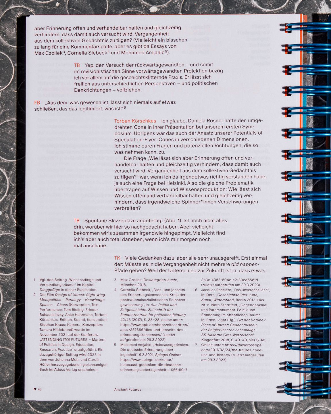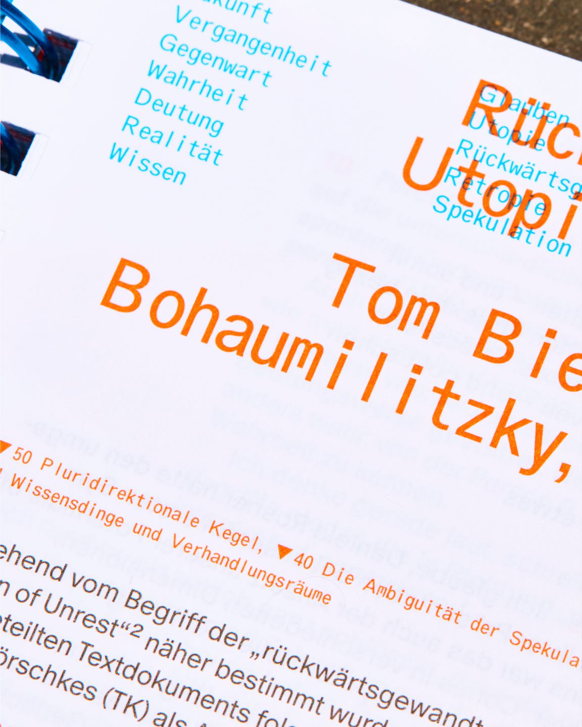 The work on this publication raised various questions about design and the medium of the book itself, prompting us to delve deep into the realms of the so-called Specology ourselves first. The publication engages in the discourse on speculative design, approaches it critically, and seeks new forms of creative, artistic, provocative, experimental production, and aesthetic research. In close collaboration with the research team, material from over three years of work has been curated, edited, collaged, and is presented in a collection that encourages an interlaced and non-linear approach to the topic.