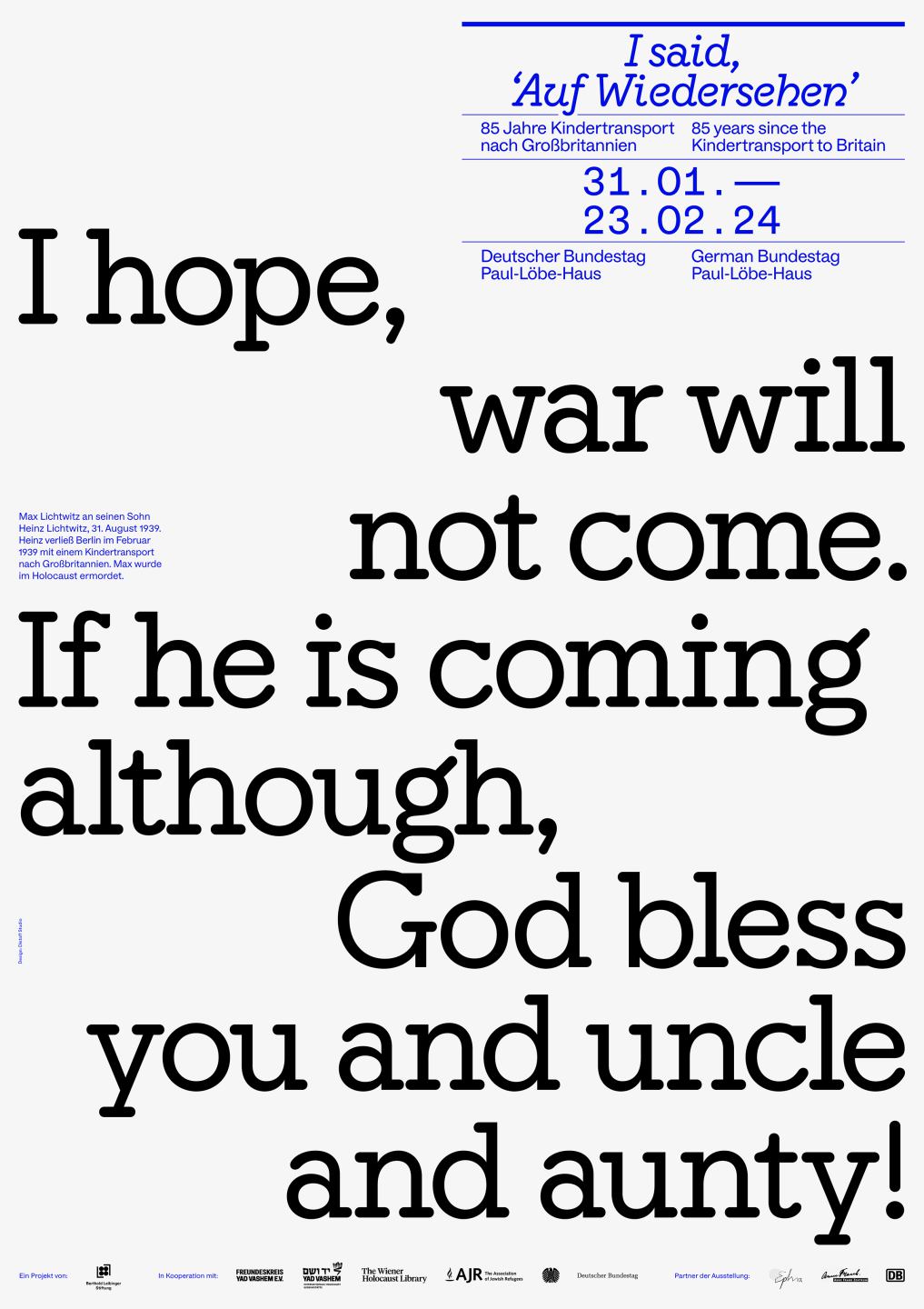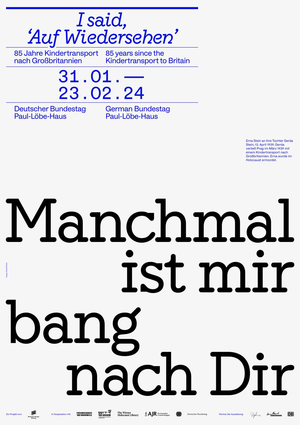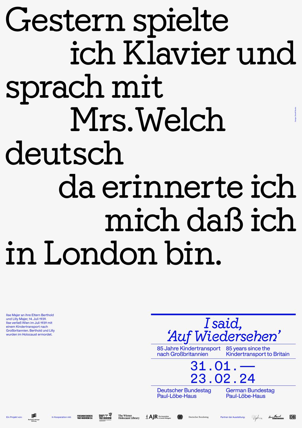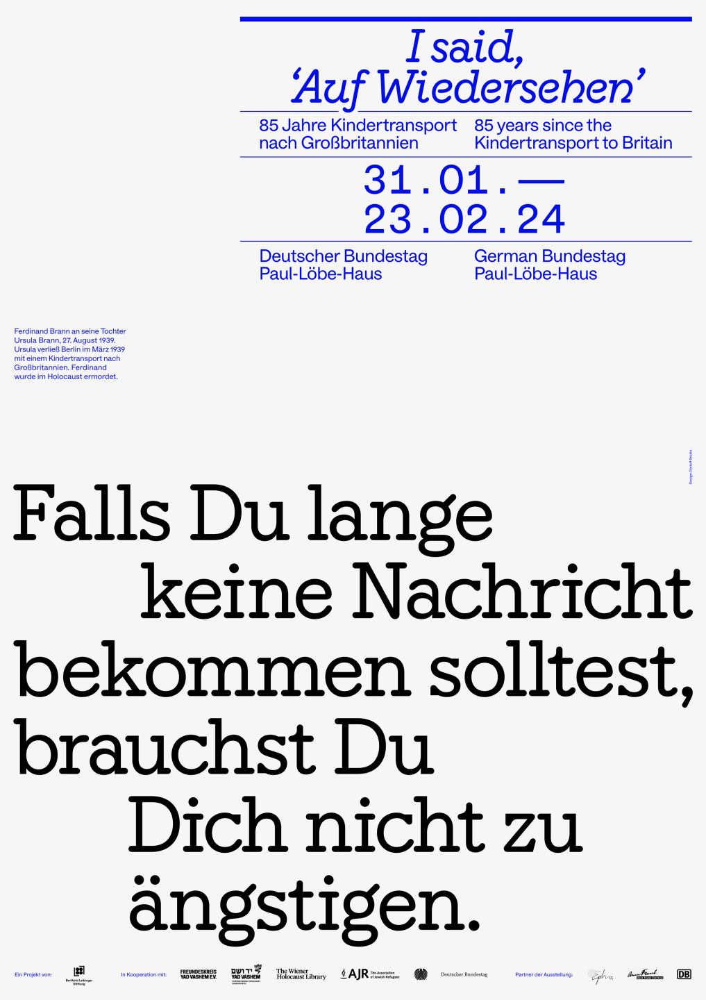I said ‘Auf Wiedersehen’ — 85 Years of Kindertransport to Britain, exhibition graphics and campaign design for Berthold Leibinger Stiftung, at Paul-Löbe-Haus, German Bundestag, 2024