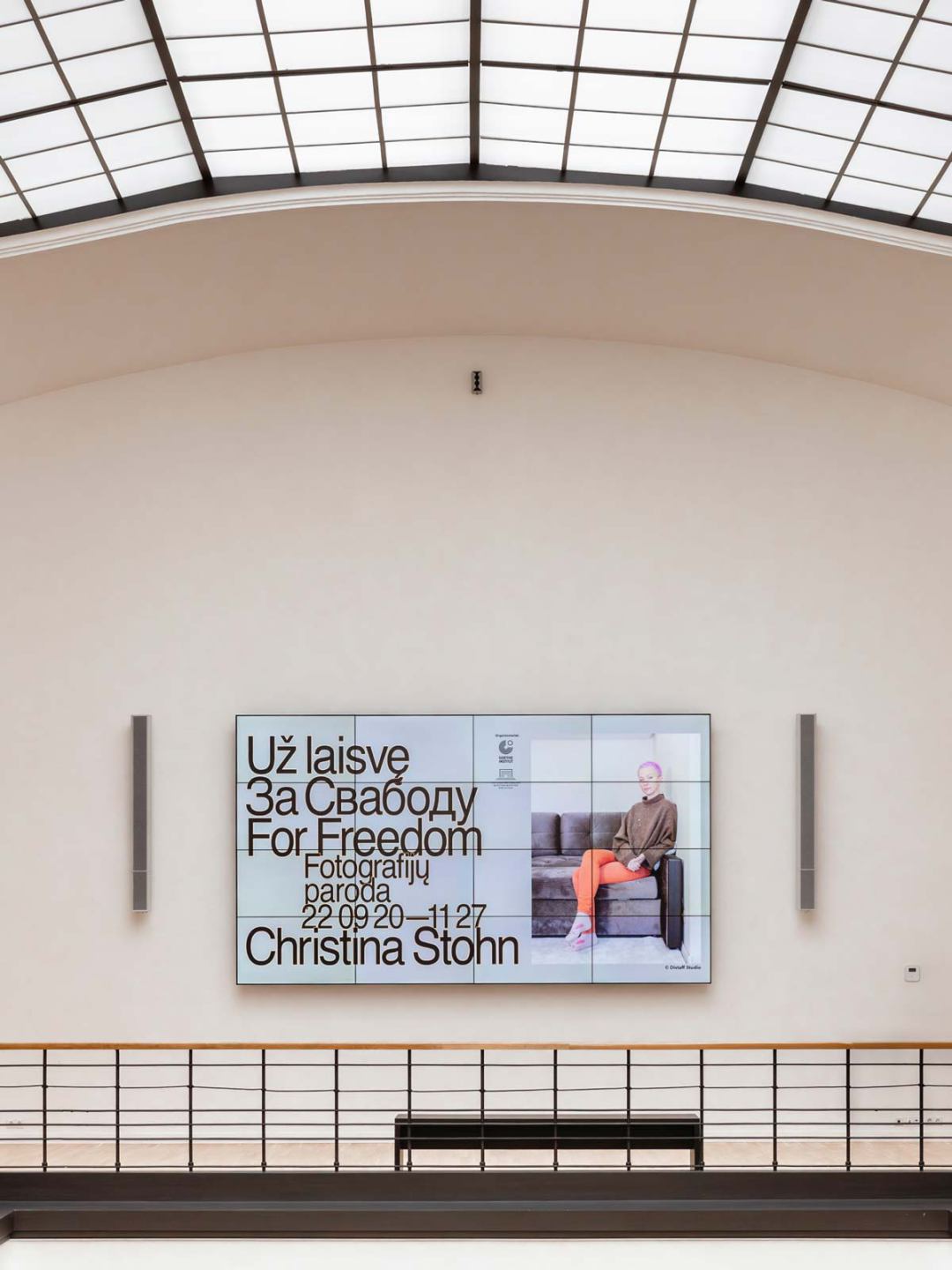 Christina Stohn is a documentary and editorial photographer. In her work Зa Свабоду (For Freedom) she created a series of portraits of Belarusian citizens living in exile in Lithuania. Since 2020, hundreds of thousands of Belarusian citizens are forced to leave their homeland which is ruled by an autocratic regime. The refugees aim to return to a free, democratic Belarus, as soon as possible. Stohn was invited by the Goethe-Institut Lithuania, where her series of 37 portraits was presented. Stohns portraits are straightforward and unpretentious. With our poster design, we wanted to emphasize this expression.